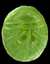Hand-carved Oval Peridot Scarab with round Tanzanite accent stone, faceted Peridots: twelve ovals mounted in Sterling Silver, dangling from a Silvertone neckpiece hung by Peridot chip chain, magnetic closure. Set includes necklace, earrings, and matching bracelet.