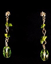 Earrings: Peridot chip chain , Silvertone posts. Drop: 1 1/4".